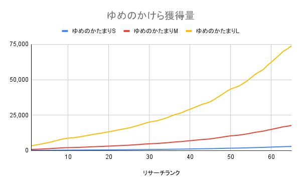 ゆめのかたまりは先ほどのWiki様参照で、各リサーチランクの獲得量で計算しました。