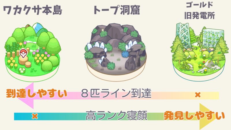 例えば「ワカクサ本島」は「①フィールドランクが上げやすいフィールド」。