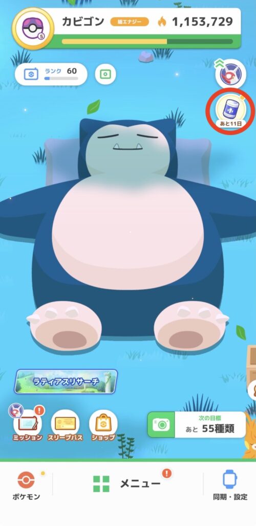毎日1回目の睡眠リサーチ時にラティアスのうもうをもらうことができるので、コツコツ貯めていきましょう。