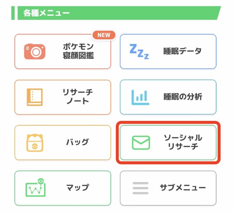 • 睡眠リサーチにて、 特定のポケモンの出現確率UP